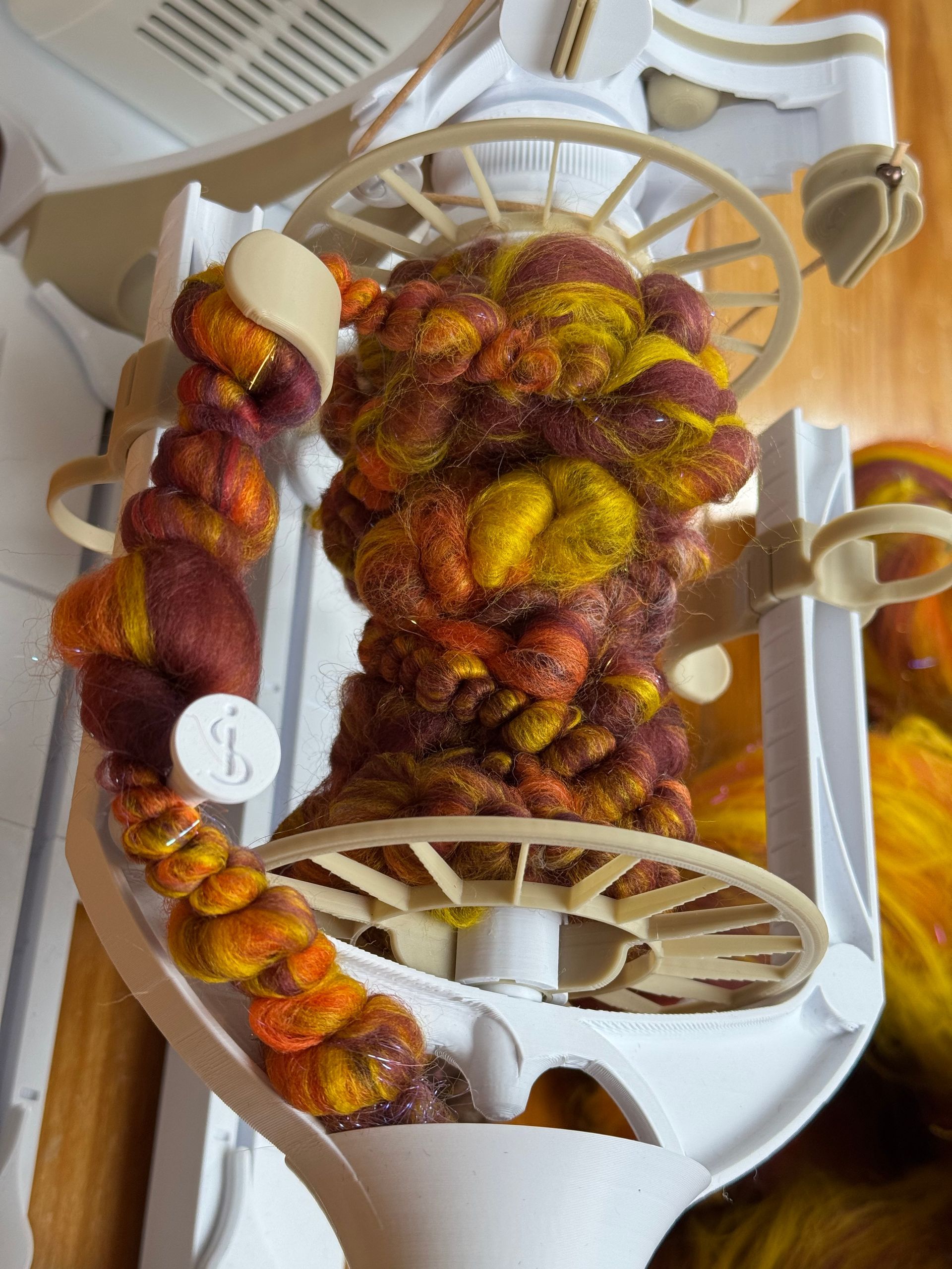 Spin Super Chunky Yarns for Rug Weavers with its massive Jumbo Orifice; easily up to 40mm diameter depending on density of fibre, as well as still being able to spin super thin Lace Yarns using the clip-in Reducer.